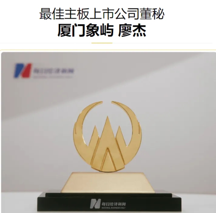 近日,由每日經(jīng)濟(jì)新聞主辦的“2021中國上市公司品牌價值藍(lán)皮書發(fā)布暨中國資本市場年度榮譽盛典”成功舉辦。廈門象嶼繼此前入圍“2021中國上市公司品牌價值活力榜TOP 100”后,再次入圍“2021福建上市公司品牌價值榜TOP 10”,品牌價值高達(dá)379.70億元,同時公司董事會秘書廖杰榮獲“2021最佳主板上市公司董秘”。